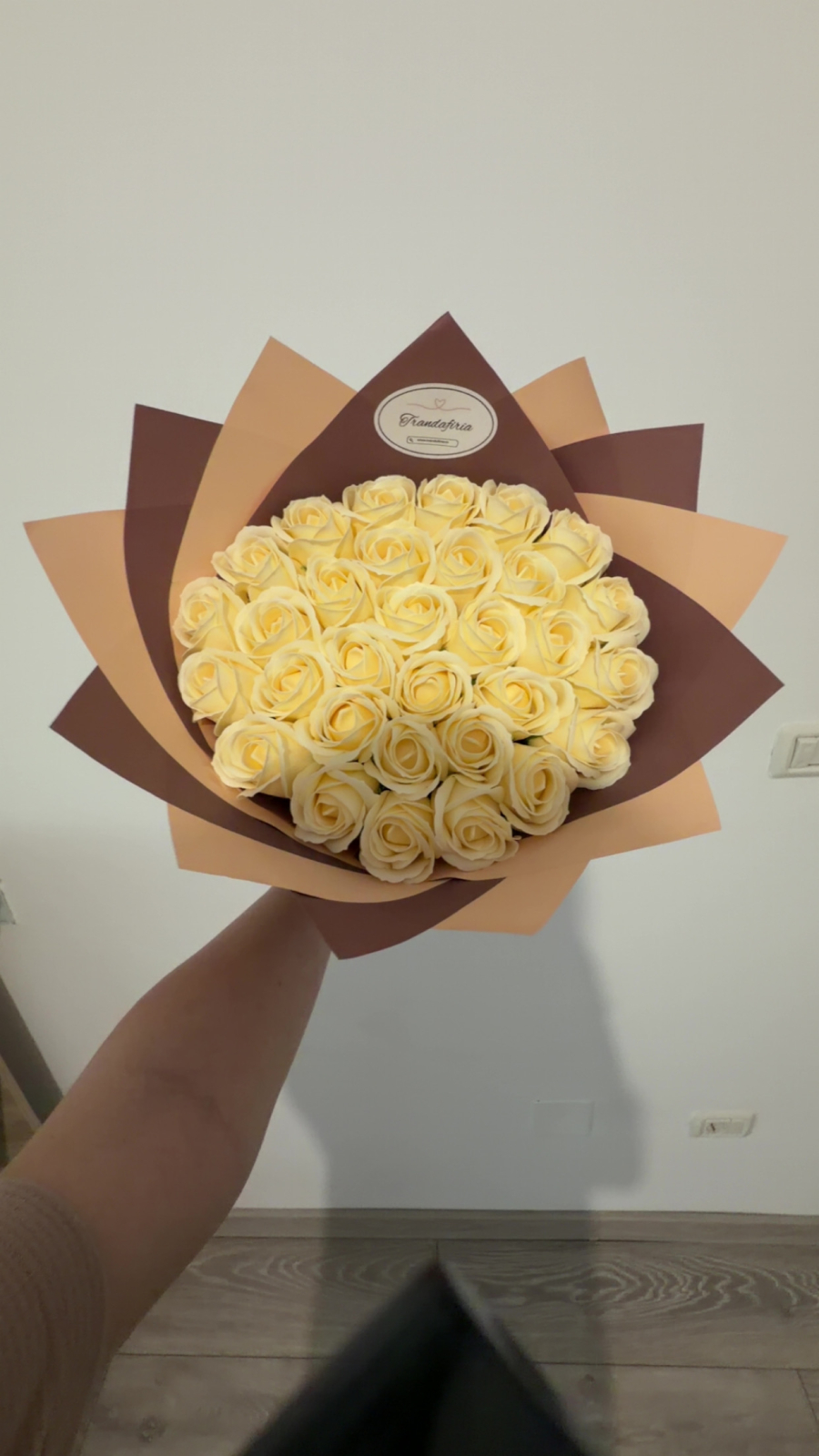 Buchetul de trandafiri din săpun este o alegere elegantă și rafinată, ideală pentru a aduce un strop de frumusețe și romantism în orice ocazie specială. Fiecare trandafir are un diametru de aproximativ 5 cm, cu petale fine care imită perfect textura naturală a florilor. Cu un aspect autentic și plin de farmec, acești trandafiri din săpun nu se ofilesc și își păstrează frumusețea timp îndelungat.