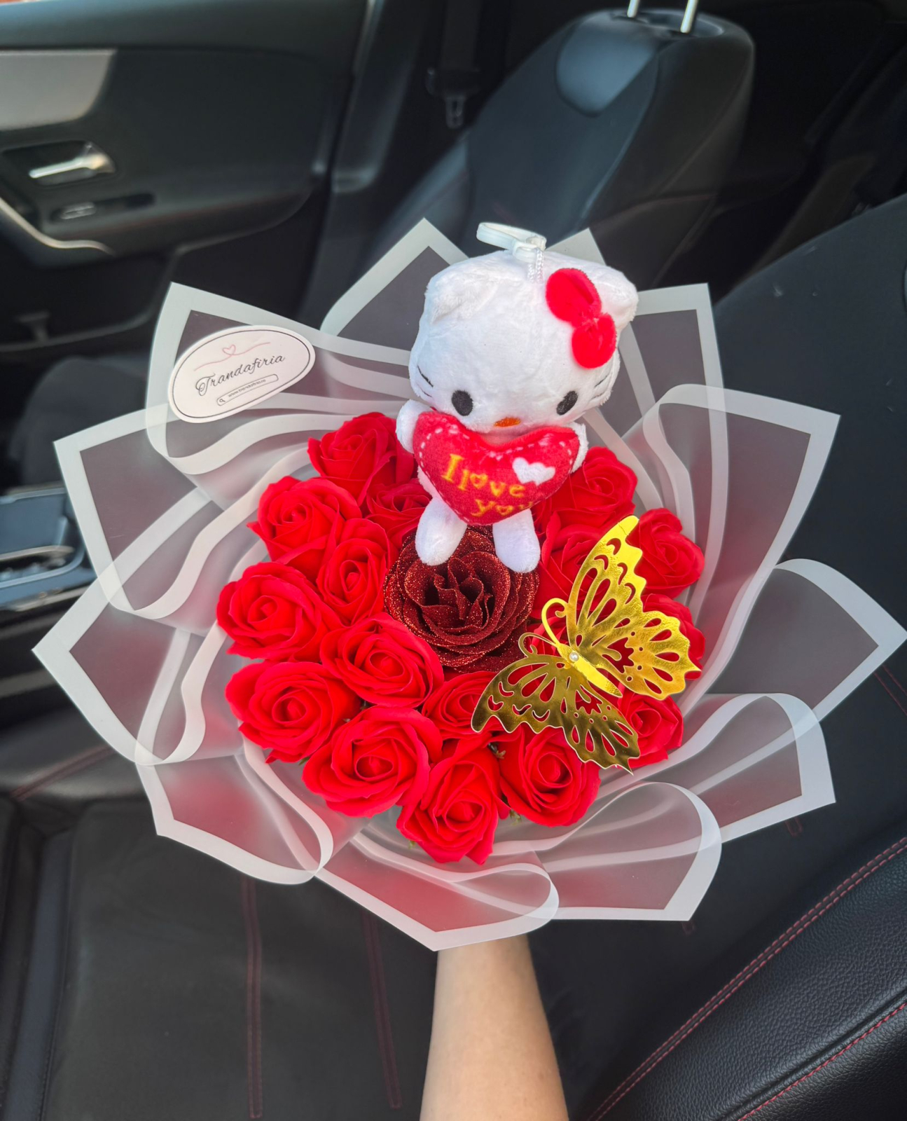 Buchet Trandafiri Rosu Hello Kitty