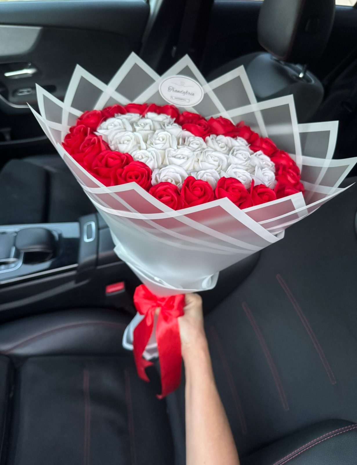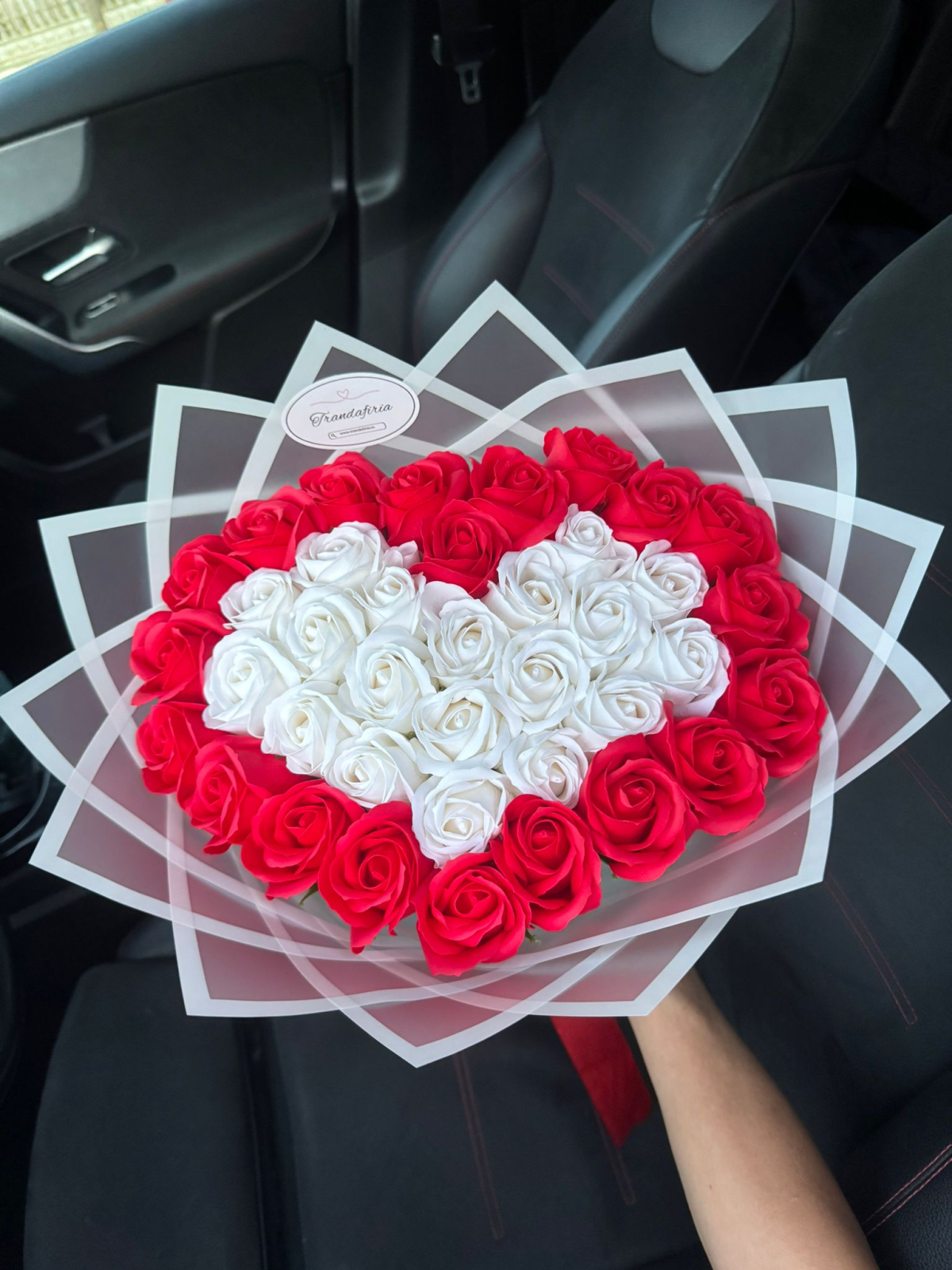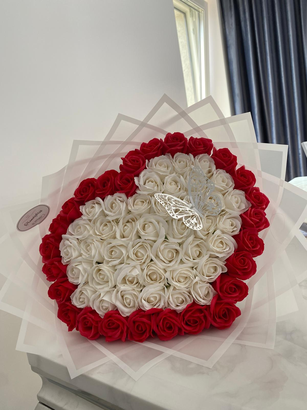 Buchetul de trandafiri din săpun este o alegere elegantă și rafinată, ideală pentru a aduce un strop de frumusețe și romantism în orice ocazie specială. Fiecare trandafir are un diametru de aproximativ 5 cm, cu petale fine care imită perfect textura naturală a florilor. Cu un aspect autentic și plin de farmec, acești trandafiri din săpun nu se ofilesc și își păstrează frumusețea timp îndelungat.