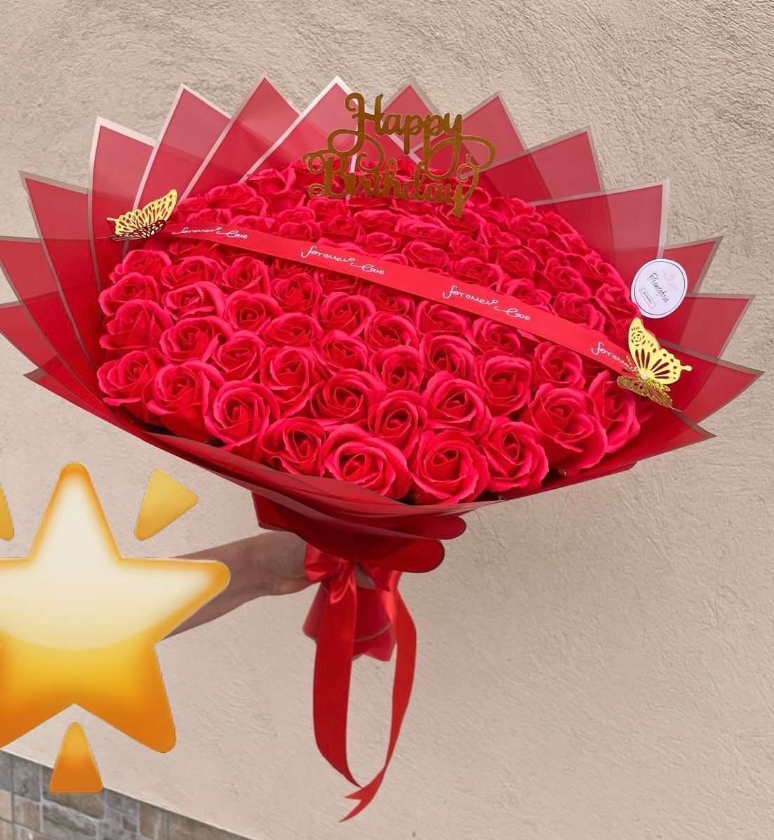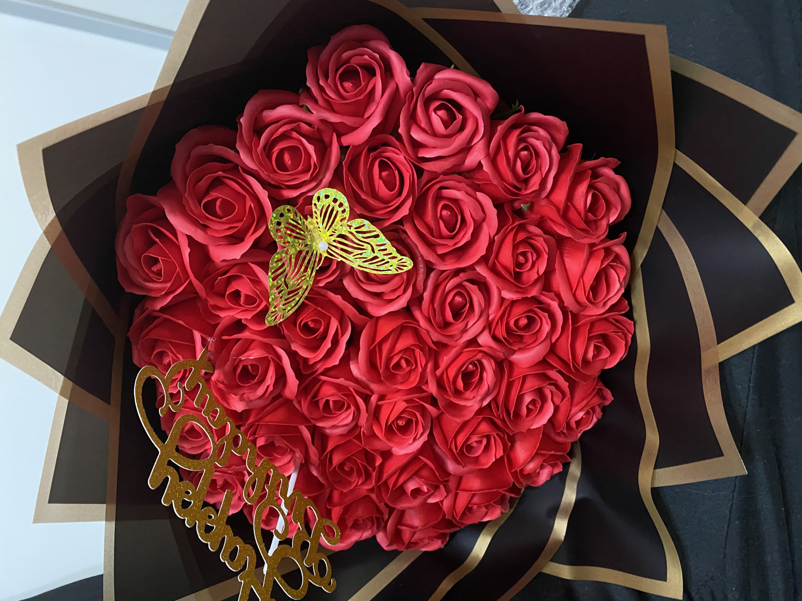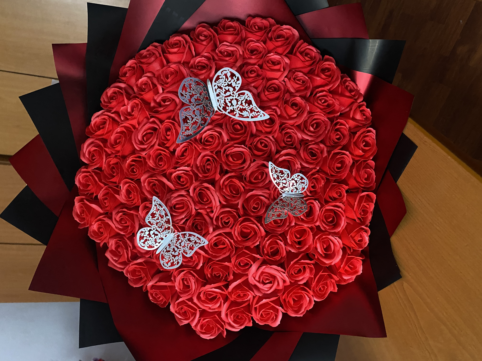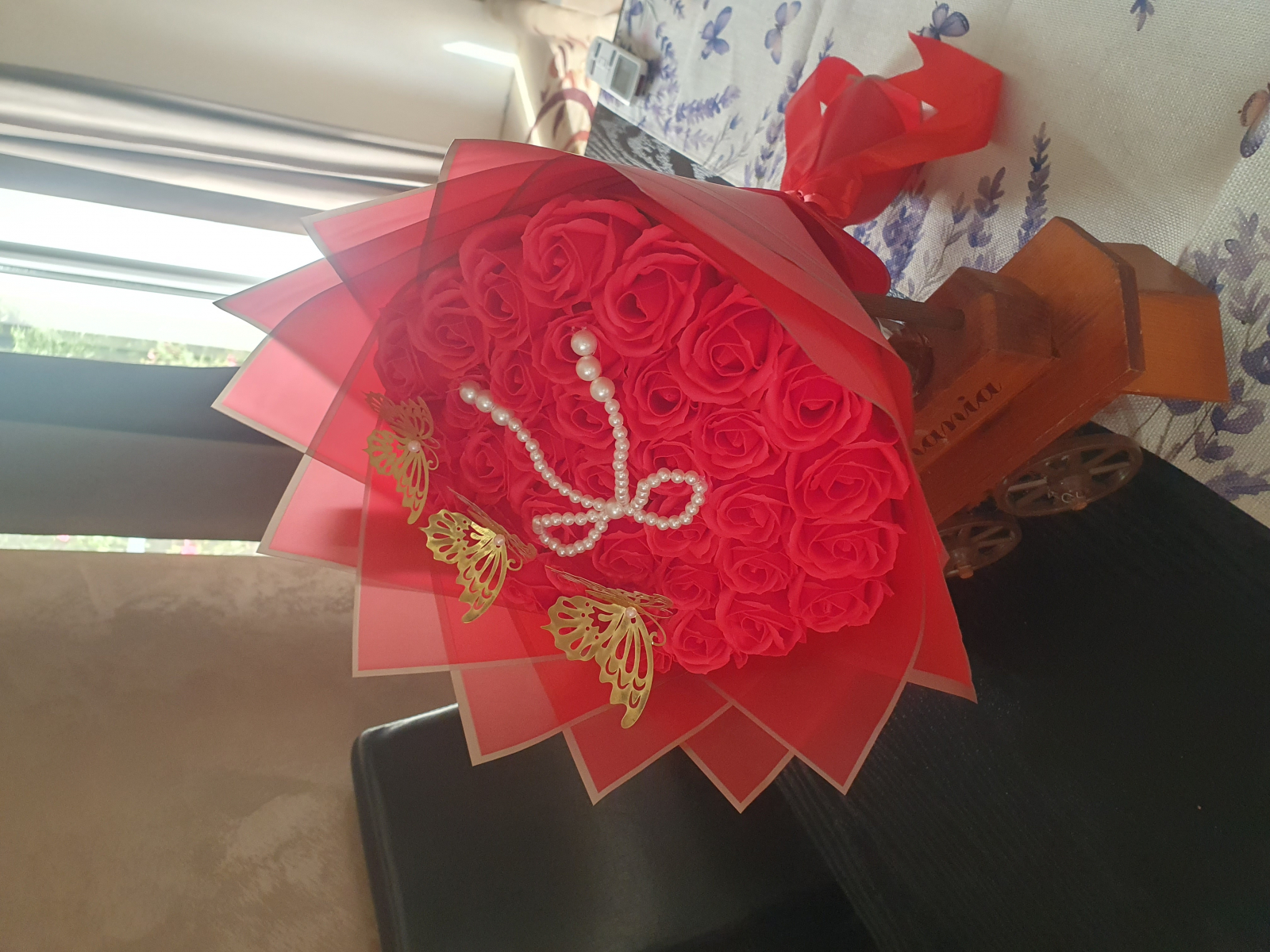 Buchetul de trandafiri din săpun este o alegere elegantă și rafinată, ideală pentru a aduce un strop de frumusețe și romantism în orice ocazie specială. Fiecare trandafir are un diametru de aproximativ 5 cm, cu petale fine care imită perfect textura naturală a florilor. Cu un aspect autentic și plin de farmec, acești trandafiri din săpun nu se ofilesc și își păstrează frumusețea timp îndelungat.