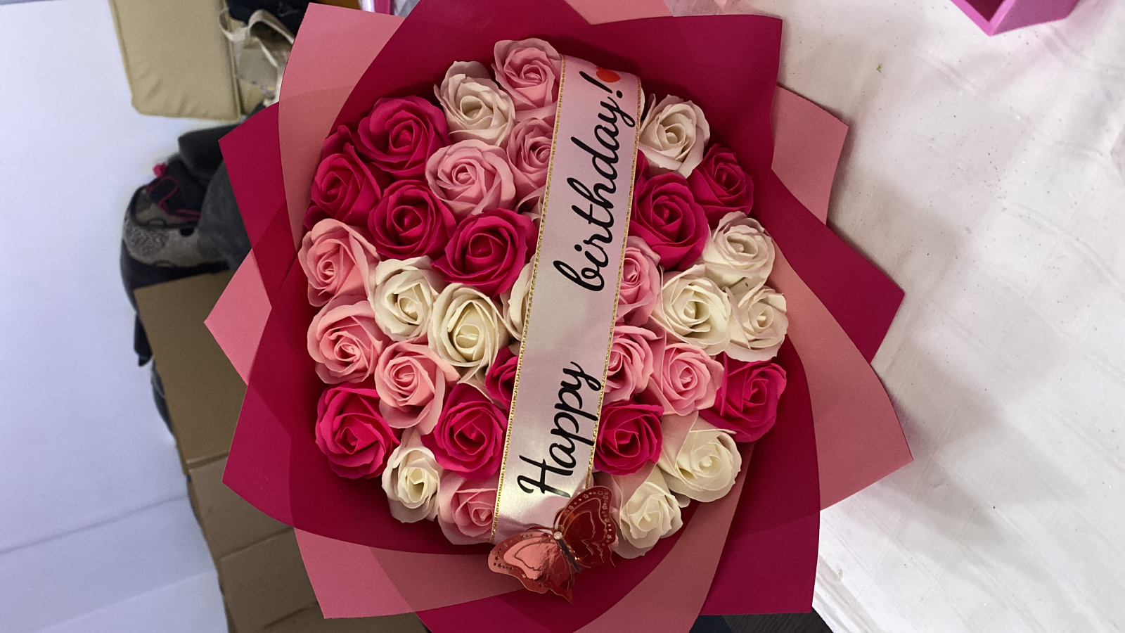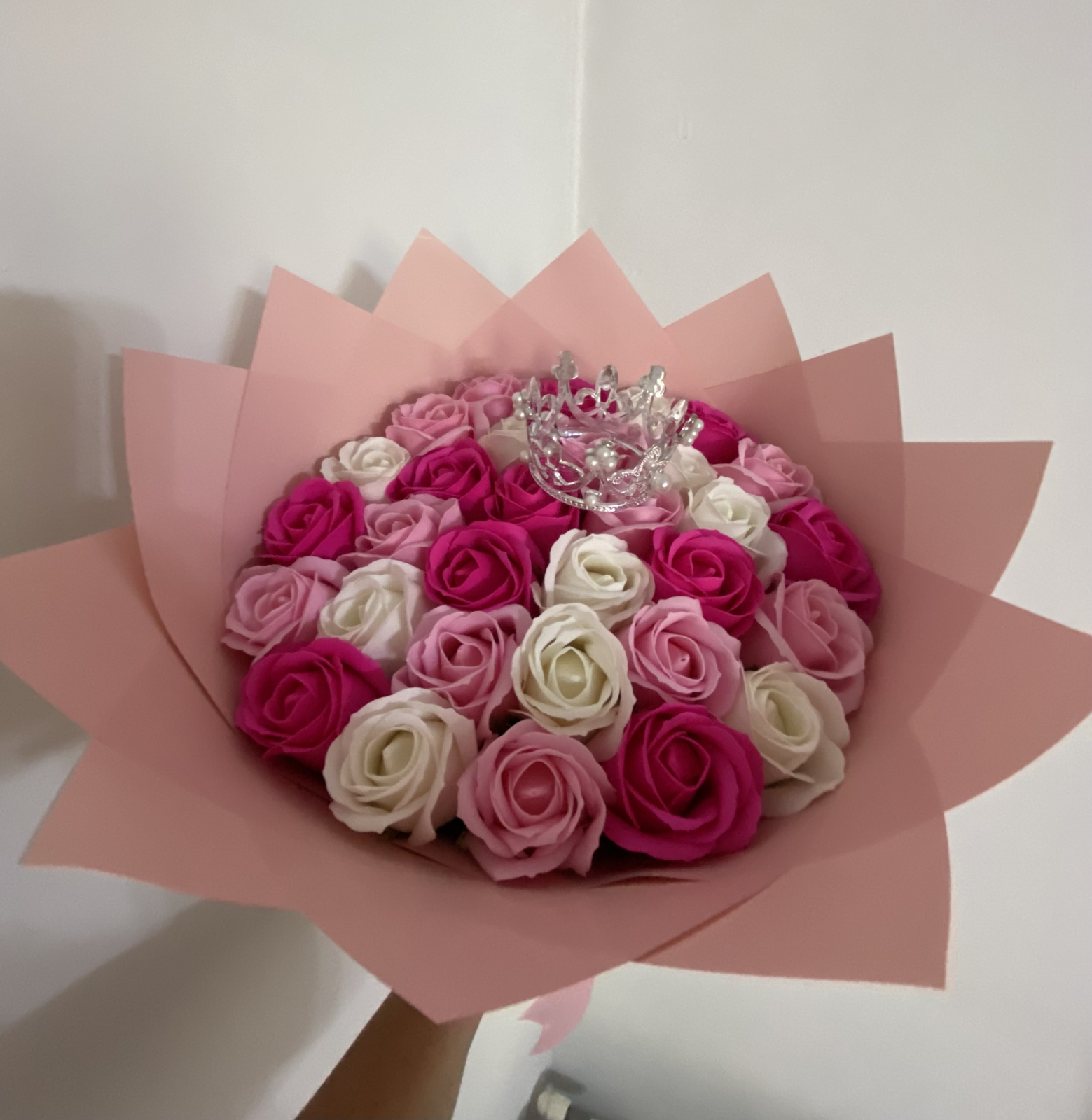 Buchetul de trandafiri din săpun este o alegere elegantă și rafinată, ideală pentru a aduce un strop de frumusețe și romantism în orice ocazie specială. Fiecare trandafir are un diametru de aproximativ 5 cm, cu petale fine care imită perfect textura naturală a florilor. Cu un aspect autentic și plin de farmec, acești trandafiri din săpun nu se ofilesc și își păstrează frumusețea timp îndelungat.