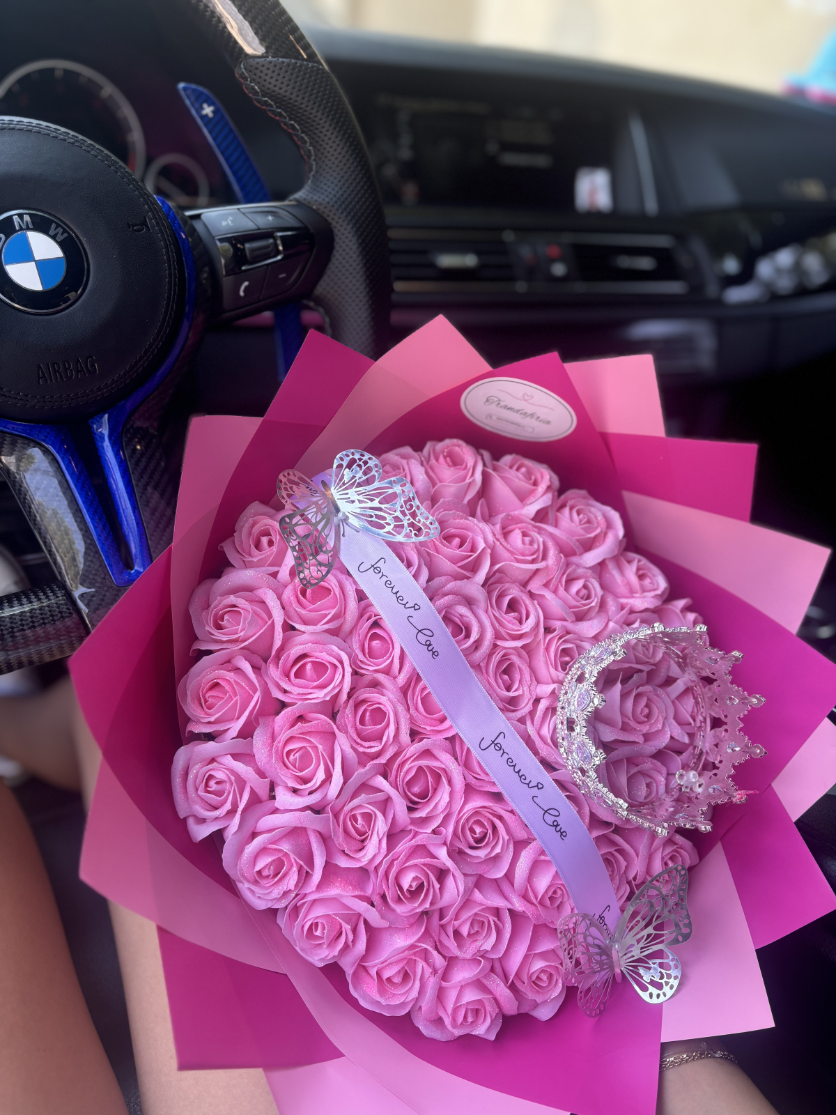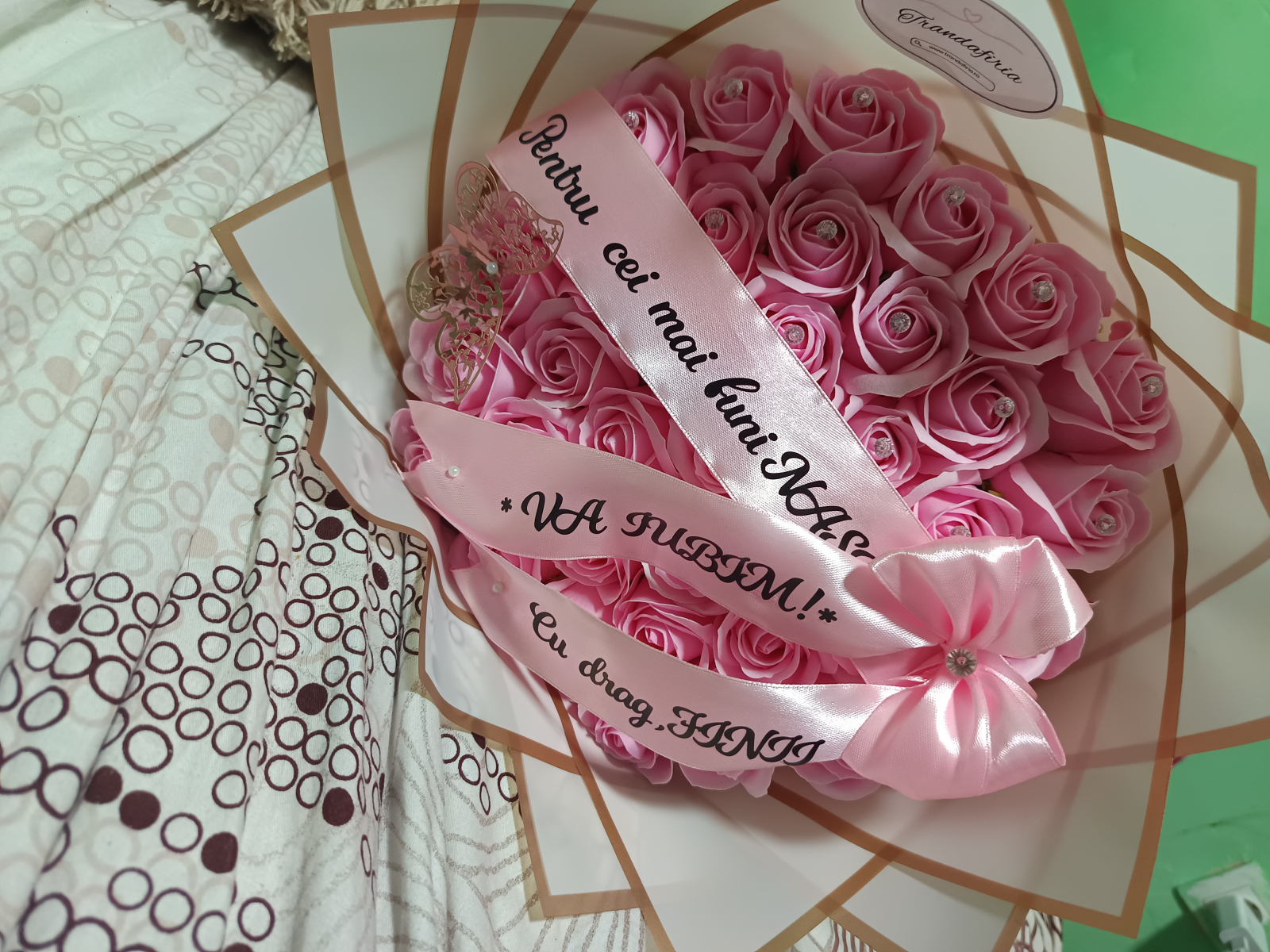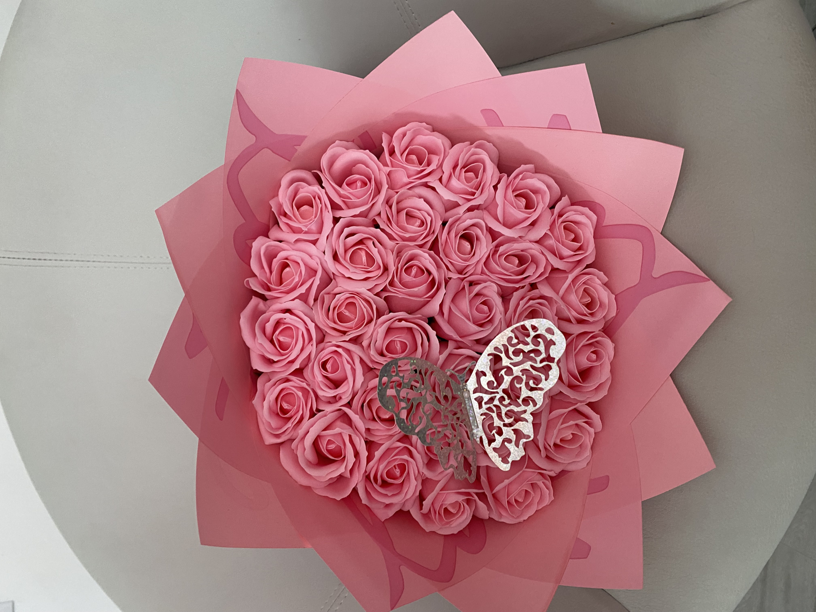Buchetul de trandafiri din săpun este o alegere elegantă și rafinată, ideală pentru a aduce un strop de frumusețe și romantism în orice ocazie specială. Fiecare trandafir are un diametru de aproximativ 5 cm, cu petale fine care imită perfect textura naturală a florilor. Cu un aspect autentic și plin de farmec, acești trandafiri din săpun nu se ofilesc și își păstrează frumusețea timp îndelungat.
